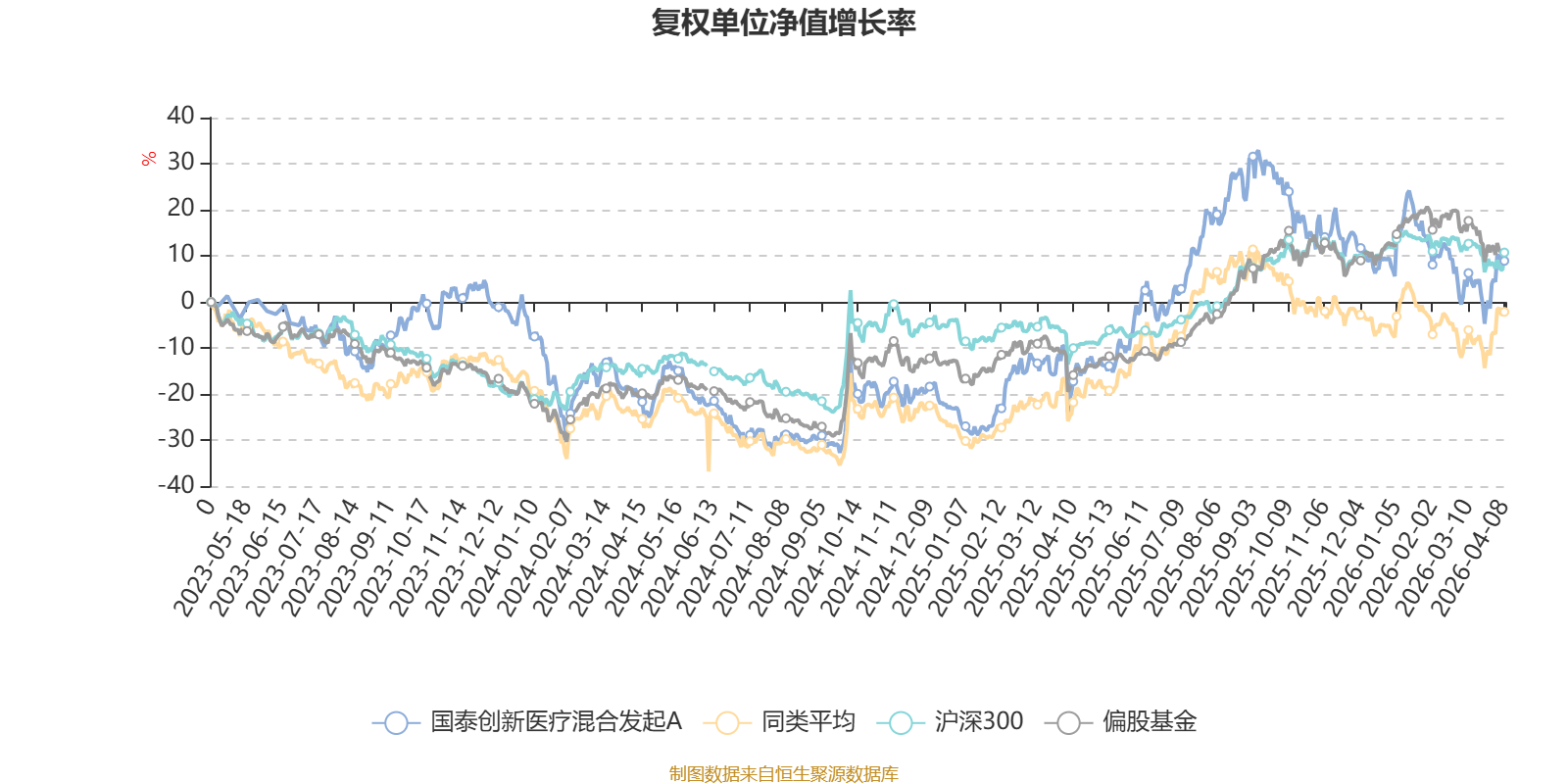截至4月8日,国泰创新医疗混合发起A近三个月复权单位净值增长率为-6.40%,位于同类可比基金86/106;近半年复权单位净值增长率为-13.55%,位于同类可比基金92/106;近一年复权单位净值增长率为38.04%,位于同类可比基金28/104。