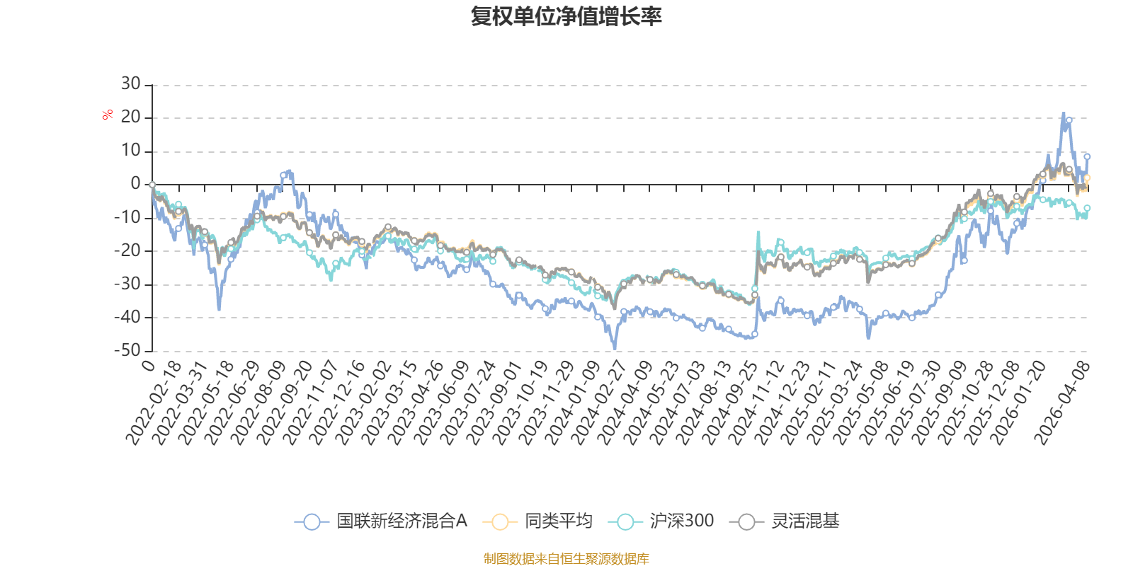 截至4月8日,国联新经济混合A近三个月复权单位净值增长率为12.96%,位于同类可比基金52/1287;近半年复权单位净值增长率为23.66%,位于同类可比基金66/1286;近一年复权单位净值增长率为102.25%,位于同类可比基金81/1286;近三年复权单位净值增长率为38.72%,位于同类可比基金229/1286。