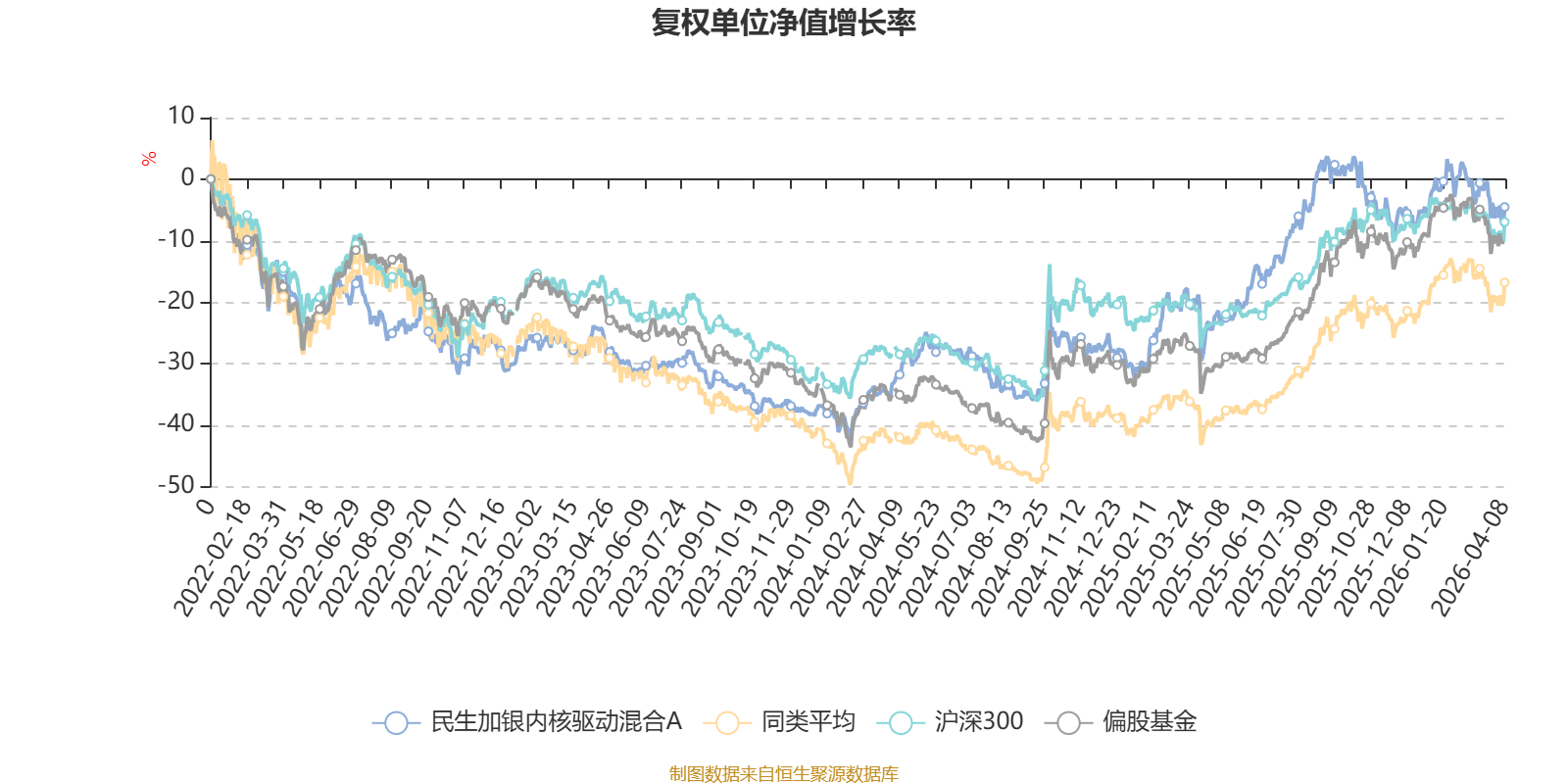 截至4月8日,民生加银内核驱动混合A近三个月复权单位净值增长率为-2.87%,位于同类可比基金428/621;近半年复权单位净值增长率为-7.89%,位于同类可比基金522/621;近一年复权单位净值增长率为34.76%,位于同类可比基金385/618;近三年复权单位净值增长率为25.31%,位于同类可比基金210/559。