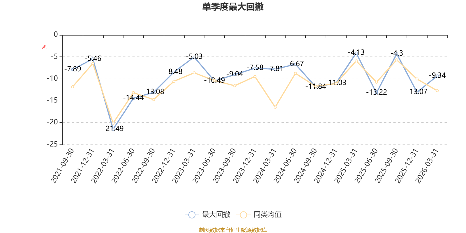 截至4月8日,基金近三年最大回撤为23.57%,同类可比基金排名63/550。单季度最大回撤出现在2022年一季度,为21.49%。