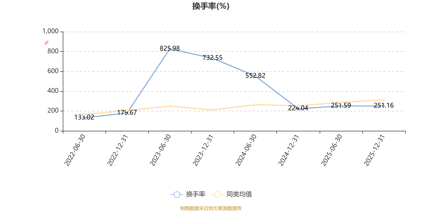 截至2025年12月31日,基金最近一年换手率约475.94%,持续1年低于同类均值。