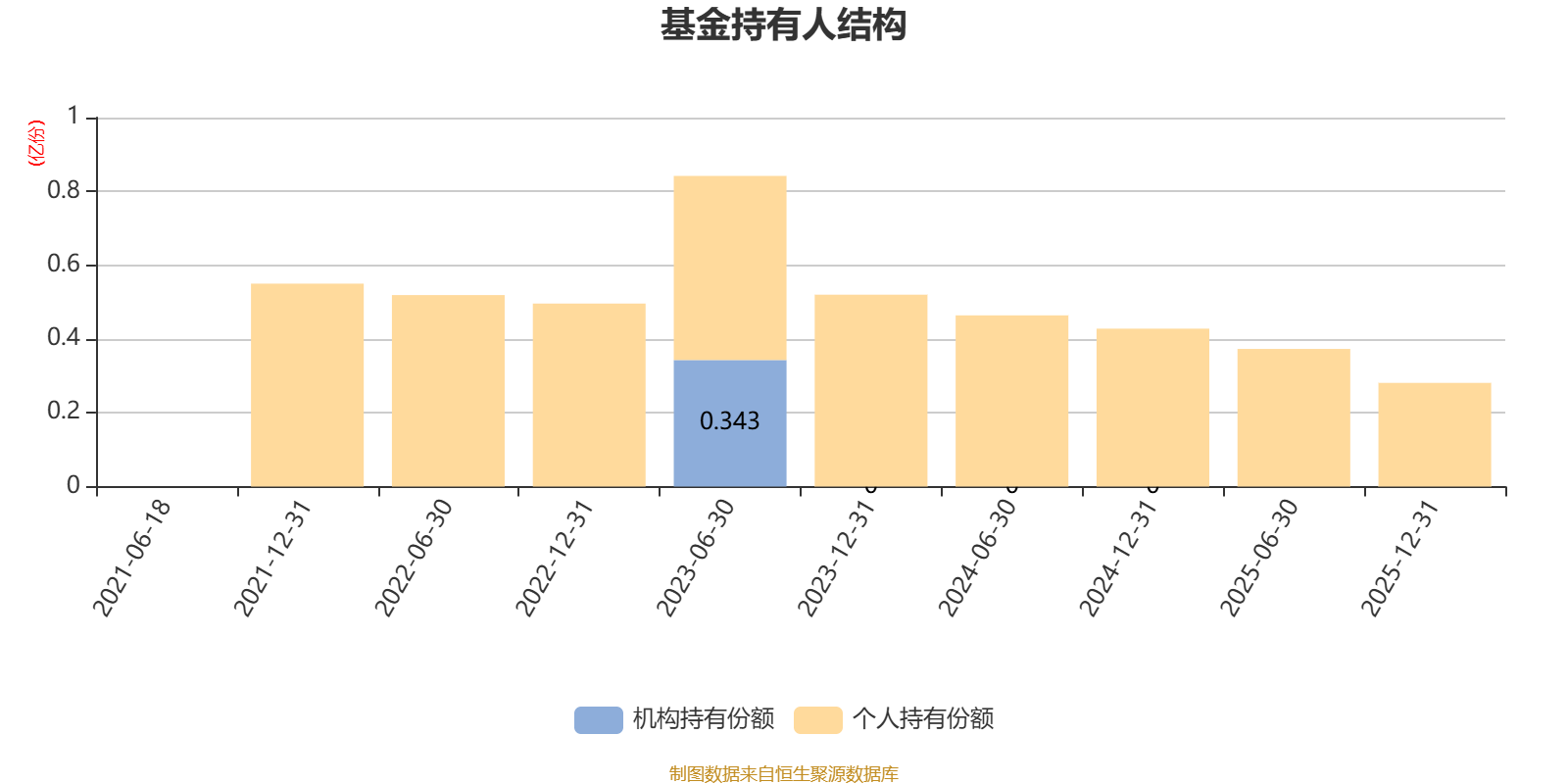 截至2025年12月31日,基金持有人共计596户,合计持有2809.83万份。其中管理人员工持有13.41万份,占比0.48%,个人投资者占比100.00%。