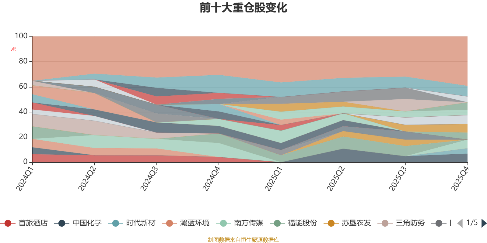 该基金持股集中度较高,近2年前十大重仓股集中度长期超过60%。截至2025年末,基金十大重仓股分别是中原传媒、川投能源、南方传媒、中国化学、新华医疗、贵州茅台、唐山港、白云山、时代新材、京东方A。