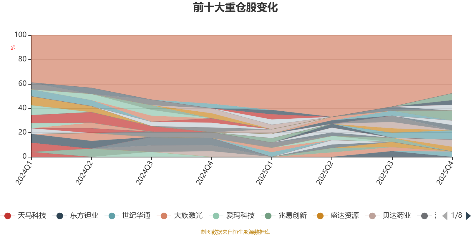 截至2025年末,基金十大重仓股分别是新易盛、菲利华、寒武纪、中际旭创、伟测科技、世纪华通、鹏鼎控股、盛屯矿业、天岳先进、中孚实业。