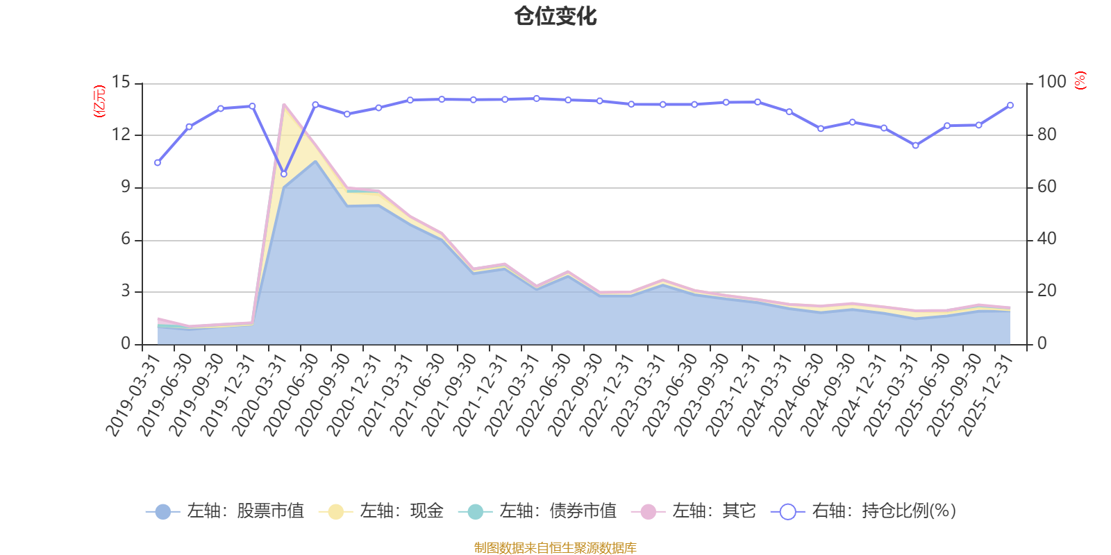 据定期报告数据统计,近三年平均股票仓位为87.05%,同类平均为72.57%。2022年一季度末基金达到94.16%的最高仓位,2020年一季度末最低,为65.25%。