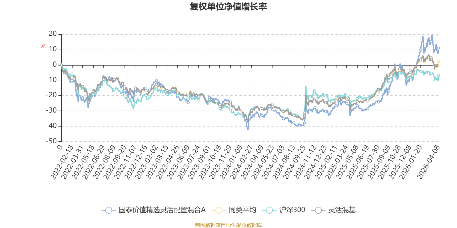 截至4月8日,国泰价值精选灵活配置混合A近三个月复权单位净值增长率为7.65%,位于同类可比基金138/1287;近半年复权单位净值增长率为12.07%,位于同类可比基金212/1286;近一年复权单位净值增长率为65.82%,位于同类可比基金233/1286;近三年复权单位净值增长率为33.34%,位于同类可比基金305/1286。
