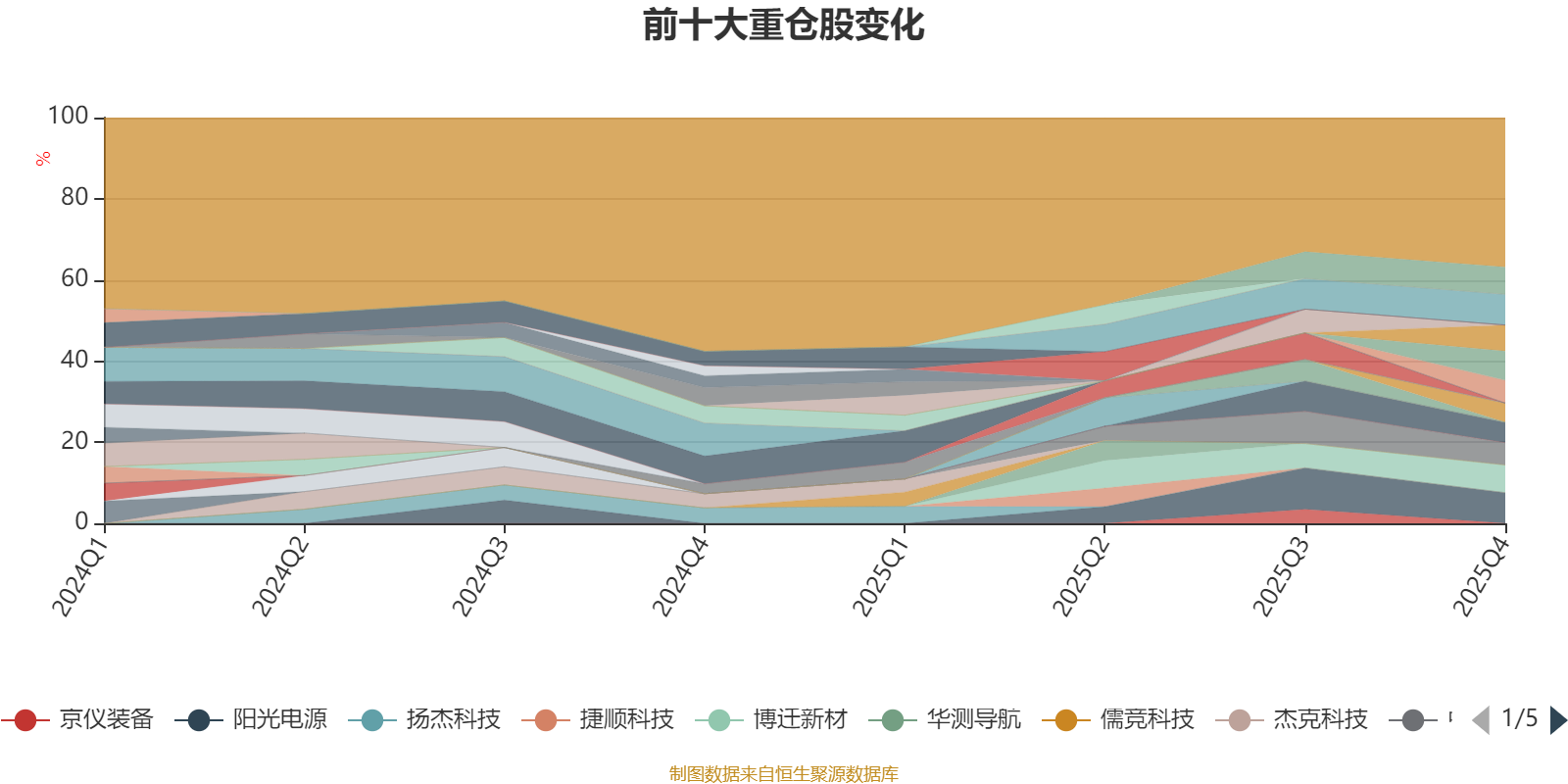 截至2025年末,基金十大重仓股分别是阳光电源、金风科技、生益科技、博迁新材、华虹公司、中际旭创、北方华创、中微公司、宁德时代、盐湖股份。