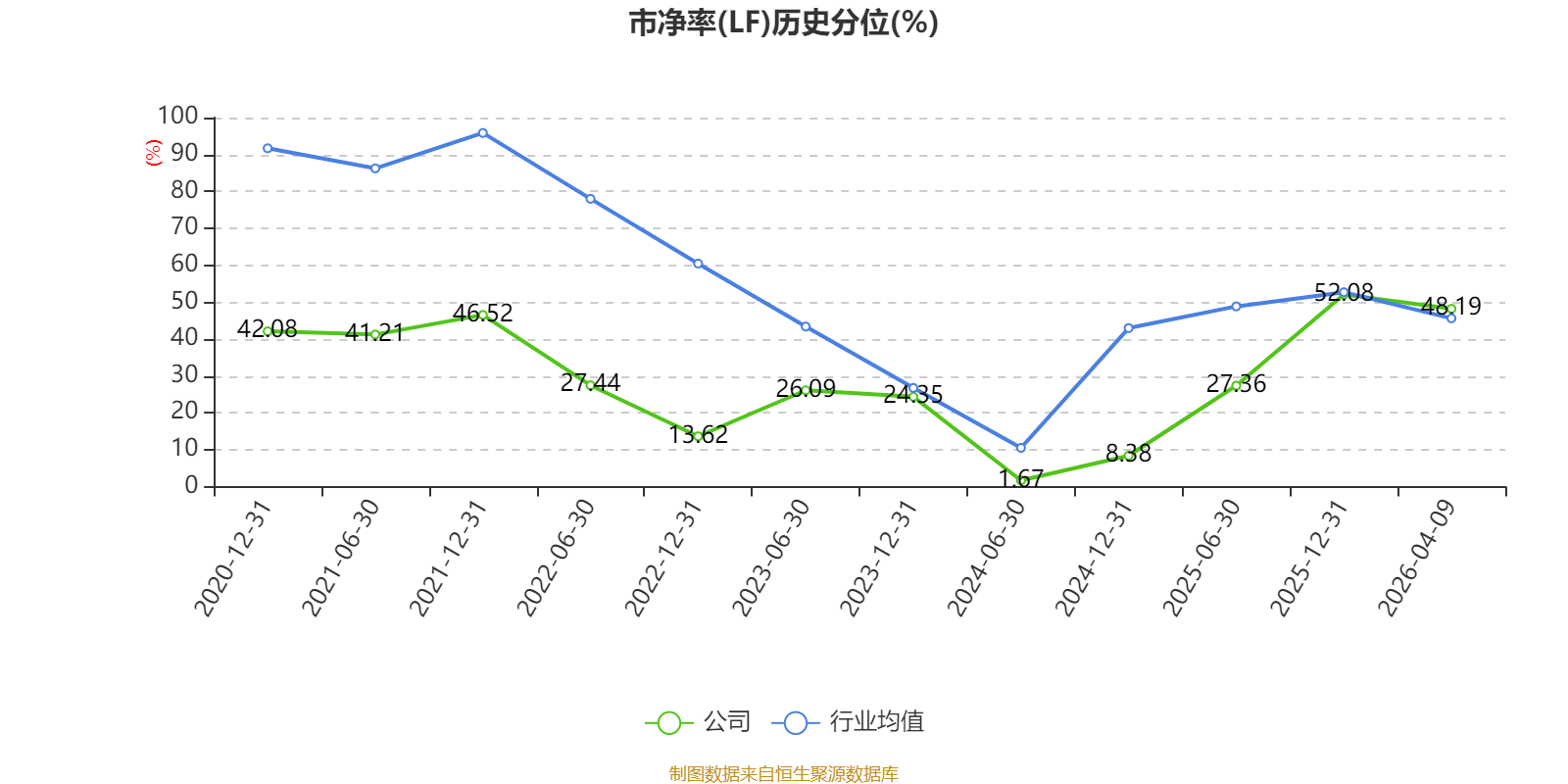 市盈率、市净率为负时,不显示当期分位数,会导致折线图中断。