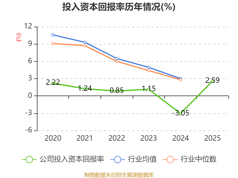 数据显示,2025年公司加权平均净资产收益率为2.97%,较上年同期上升6.2个百分点。公司2025年投入资本回报率为2.59%,较上年同期上升5.64个百分点。