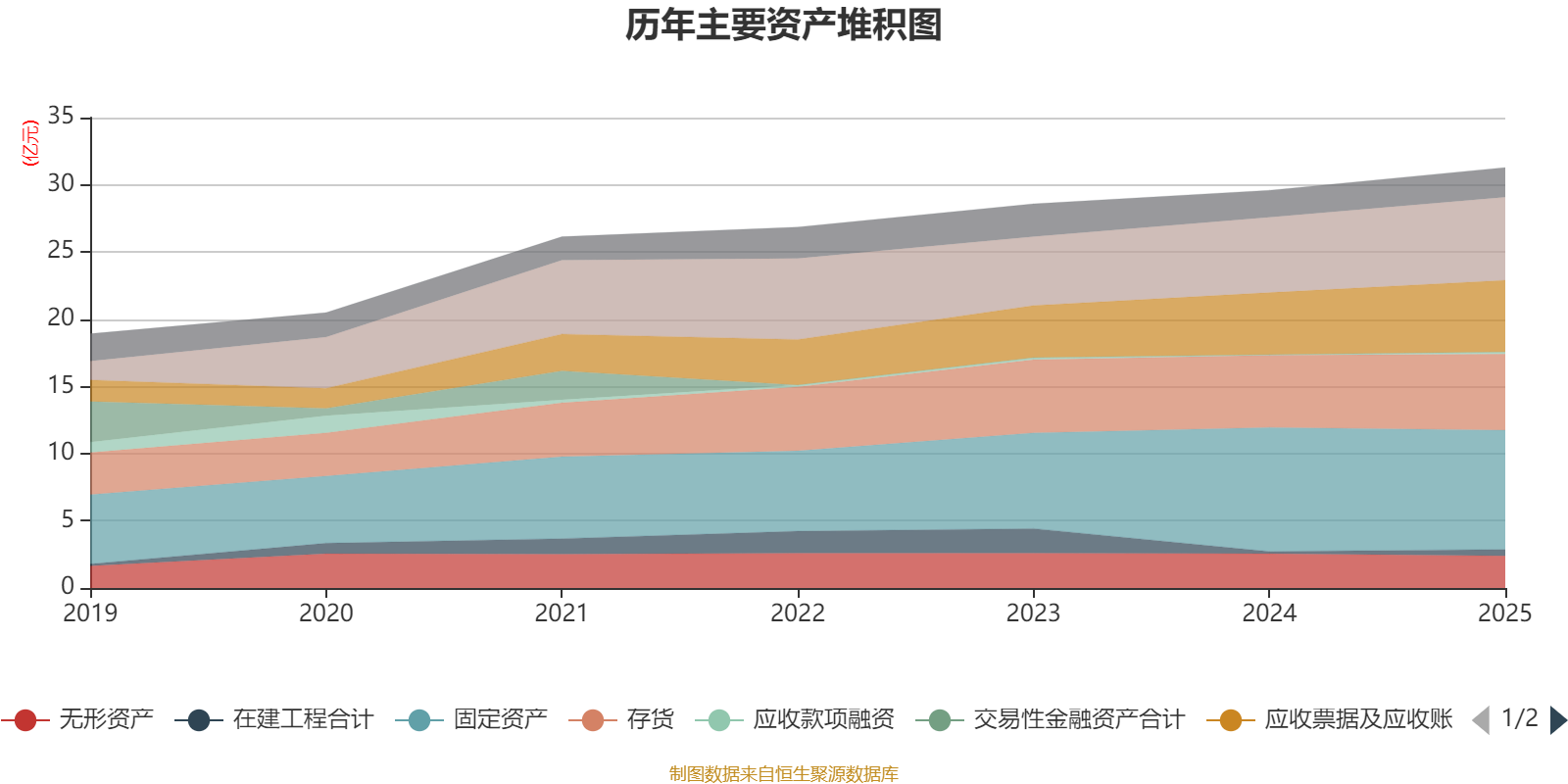 资产重大变化方面,截至2025年末,公司固定资产较上年末减少3.84%,占公司总资产比重下降2.82个百分点;应收票据及应收账款较上年末增加15.44%,占公司总资产比重上升1.43个百分点;无形资产较上年末减少6.89%,占公司总资产比重下降1.03个百分点;在建工程合计较上年末增加201.59%,占公司总资产比重上升1.02个百分点。