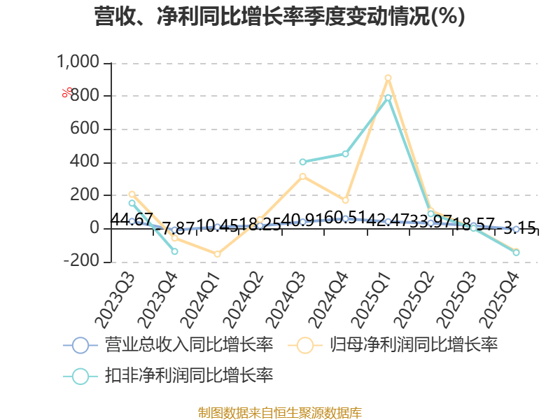 资产重大变化方面,截至2025年末,公司交易性金融资产合计较上年末增加341.61%,占公司总资产比重上升23.09个百分点;货币资金较上年末减少29.34%,占公司总资产比重下降22.51个百分点;其他权益工具投资较上年末减少79.27%,占公司总资产比重下降1.59个百分点;存货较上年末增加24.16%,占公司总资产比重上升1.01个百分点。