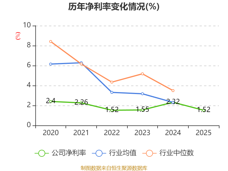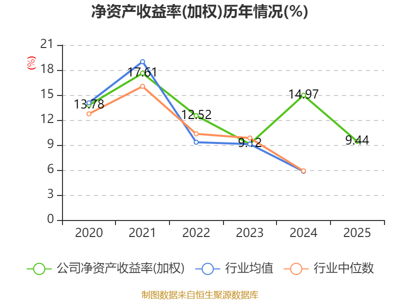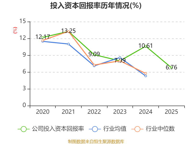 数据显示,2025年公司加权平均净资产收益率为9.44%,较上年同期下降5.53个百分点。公司2025年投入资本回报率为6.76%,较上年同期下降3.85个百分点。