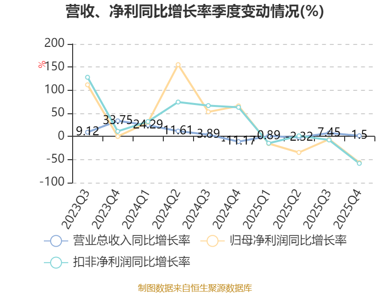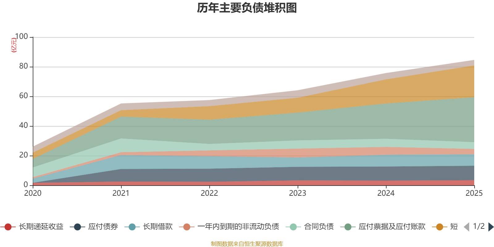 负债重大变化方面,截至2025年末,公司应付票据及应付账款较上年末增加27.36%,占公司总资产比重上升2.85个百分点;短期借款较上年末增加31.96%,占公司总资产比重上升2.43个百分点;一年内到期的非流动负债较上年末减少32.42%,占公司总资产比重下降1.39个百分点;合同负债较上年末减少16.66%,占公司总资产比重下降0.89个百分点。