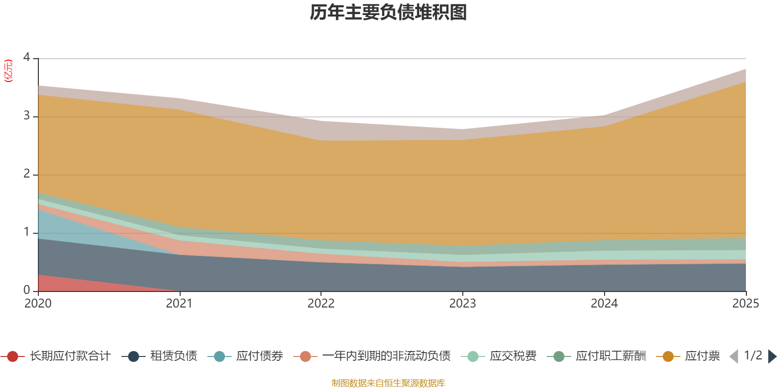 负债重大变化方面,截至2025年末,公司应付票据及应付账款较上年末增加37.23%,占公司总资产比重上升3.11个百分点;租赁负债较上年末增加4.43%,占公司总资产比重下降0.23个百分点;一年内到期的非流动负债较上年末减少20.66%,占公司总资产比重下降0.19个百分点;长期递延收益较上年末增加32.12%,占公司总资产比重上升0.09个百分点。