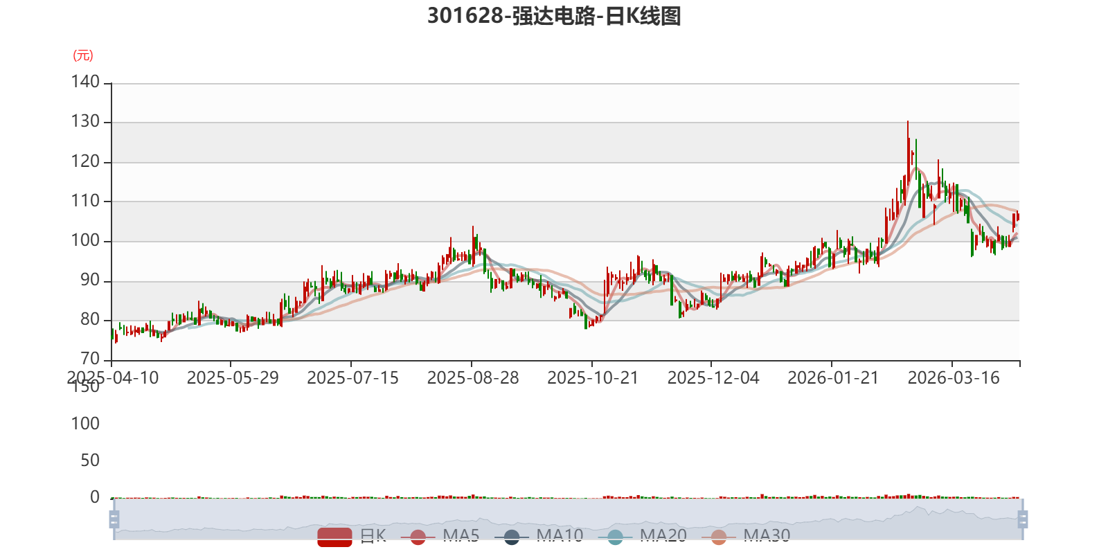 以4月9日收盘价计算,强达电路目前市盈率(TTM)约为66.64倍,市净率(LF)约6.87倍,市销率(TTM)约8.45倍。