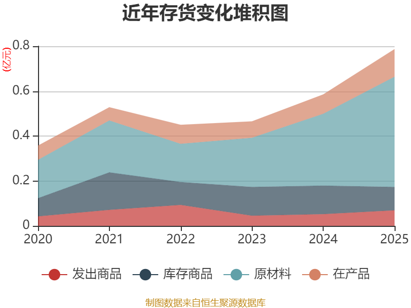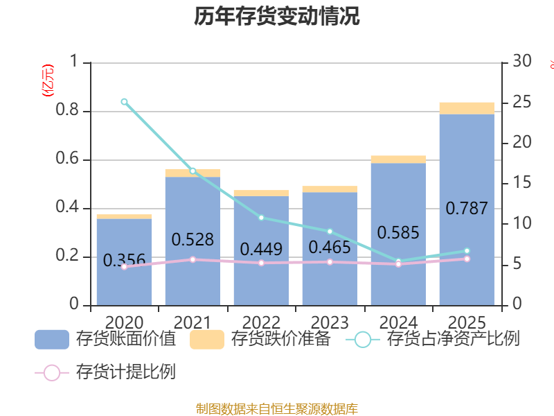 从存货变动来看,截至2025年末,公司存货账面价值为7869.01万元,占净资产的6.71%,较上年末增加2014.08万元。其中,存货跌价准备为476.74万元,计提比例为5.71%。