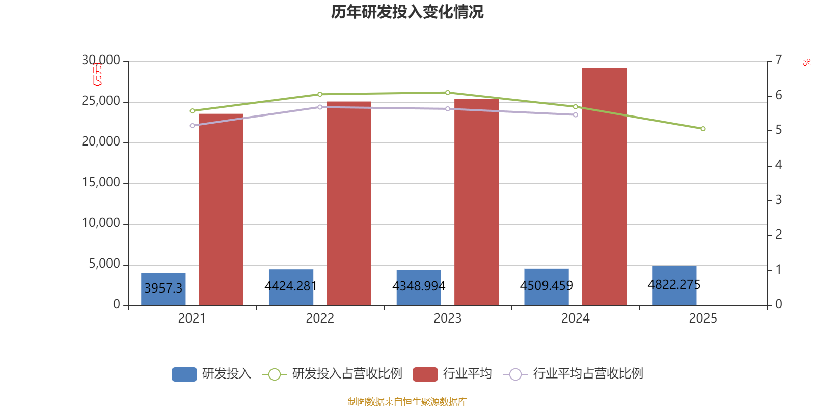2025年全年,公司研发投入金额为4822.27万元,同比增长6.94%;研发投入占营业收入比例为5.06%,相比上年同期下降0.63个百分点。此外,公司全年研发投入资本化率为0%。