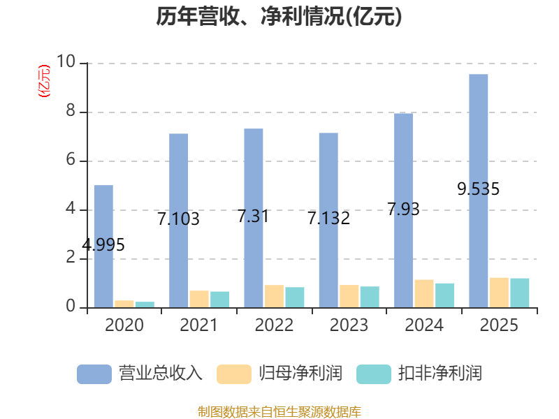 中证智能财讯强达电路(301628)4月10日披露2025年年度报告。2025年,公司实现营业总收入9.54亿元,同比增长20.24%;归母净利润1.21亿元,同比增长7.31%;扣非净利润1.18亿元,同比增长20.88%;经营活动产生的现金流量净额为1.19亿元,同比增长9.29%;报告期内,强达电路基本每股收益为1.6元,加权平均净资产收益率为10.76%。公司2025年度分配预案为:拟向全体股东每10股派现5元(含税)。
