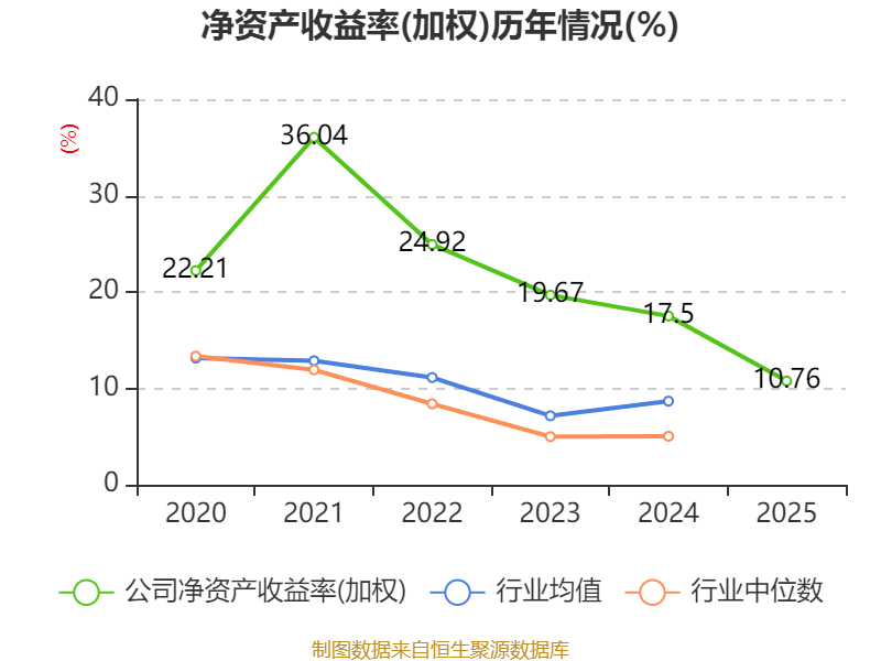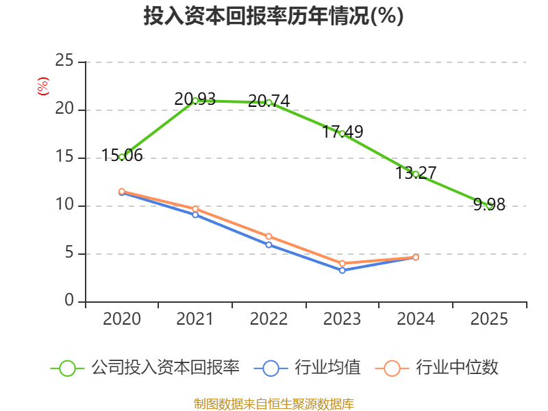 数据显示,2025年公司加权平均净资产收益率为10.76%,较上年同期下降6.74个百分点。公司2025年投入资本回报率为9.98%,较上年同期下降3.29个百分点。