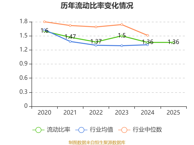 2025年,公司流动比率为1.36,速动比率为1.02。