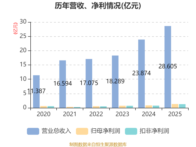 中证智能财讯南京聚隆(300644)4月10日披露2025年年度报告。2025年,公司实现营业总收入28.61亿元,同比增长19.82%;归母净利润1.32亿元,同比增长57.05%;扣非净利润1.27亿元,同比增长67.00%;经营活动产生的现金流量净额为-1.11亿元,上年同期为1.23亿元;报告期内,南京聚隆基本每股收益为1.2229元,加权平均净资产收益率为13.06%。公司2025年度分配预案为:拟向全体股东每10股派现2.5元(含税)。