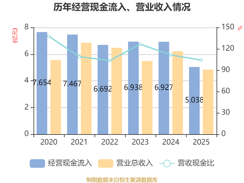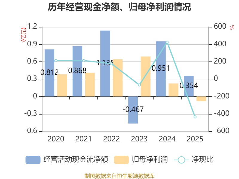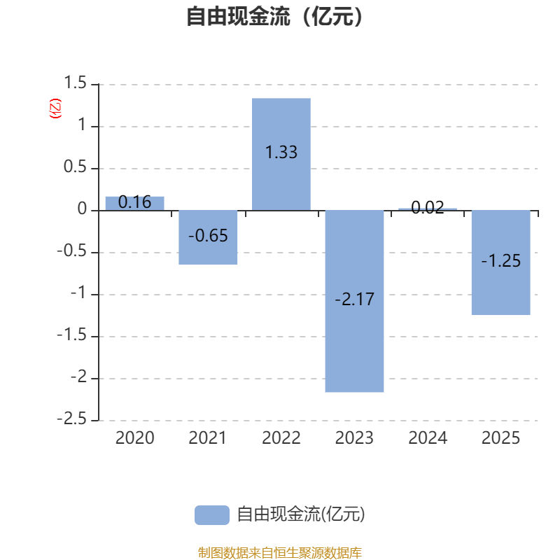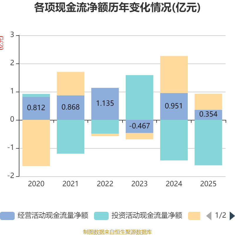 截至2025年,公司经营活动现金流净额为3538.19万元,同比下降62.81%;筹资活动现金流净额5742.92万元,同比减少7403.29万元;投资活动现金流净额-1.61亿元,上年同期为-1.44亿元。