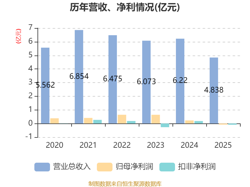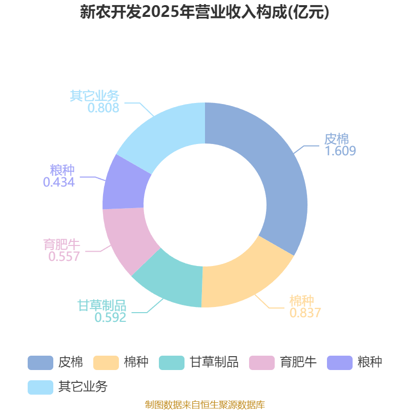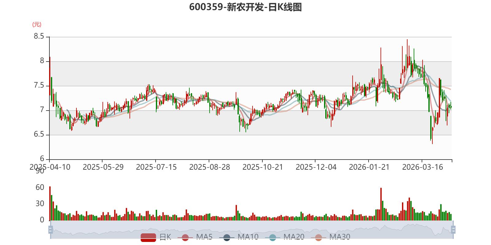 中证智能财讯新农开发(600359)4月10日披露2025年年度报告。2025年,公司实现营业总收入4.84亿元,同比下降22.22%;归母净利润亏损813.3万元,上年同期盈利2246.99万元;扣非净利润亏损900.99万元,上年同期盈利1786.14万元;经营活动产生的现金流量净额为3538.19万元,同比下降62.81%;报告期内,新农开发基本每股收益为-0.02元,加权平均净资产收益率为-1.22%。