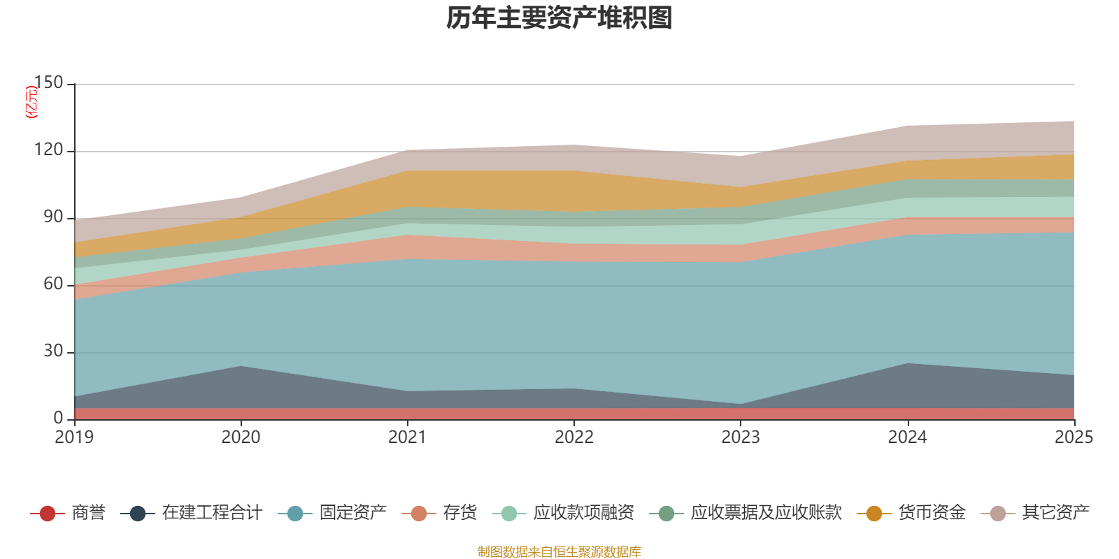 资产重大变化方面,截至2025年末,公司固定资产较上年末增加11.27%,占公司总资产比重上升4.18个百分点;在建工程合计较上年末减少25.72%,占公司总资产比重下降4.1个百分点;其他非流动资产较上年末减少82.39%,占公司总资产比重下降2.21个百分点;货币资金较上年末增加36.26%,占公司总资产比重上升2.13个百分点。