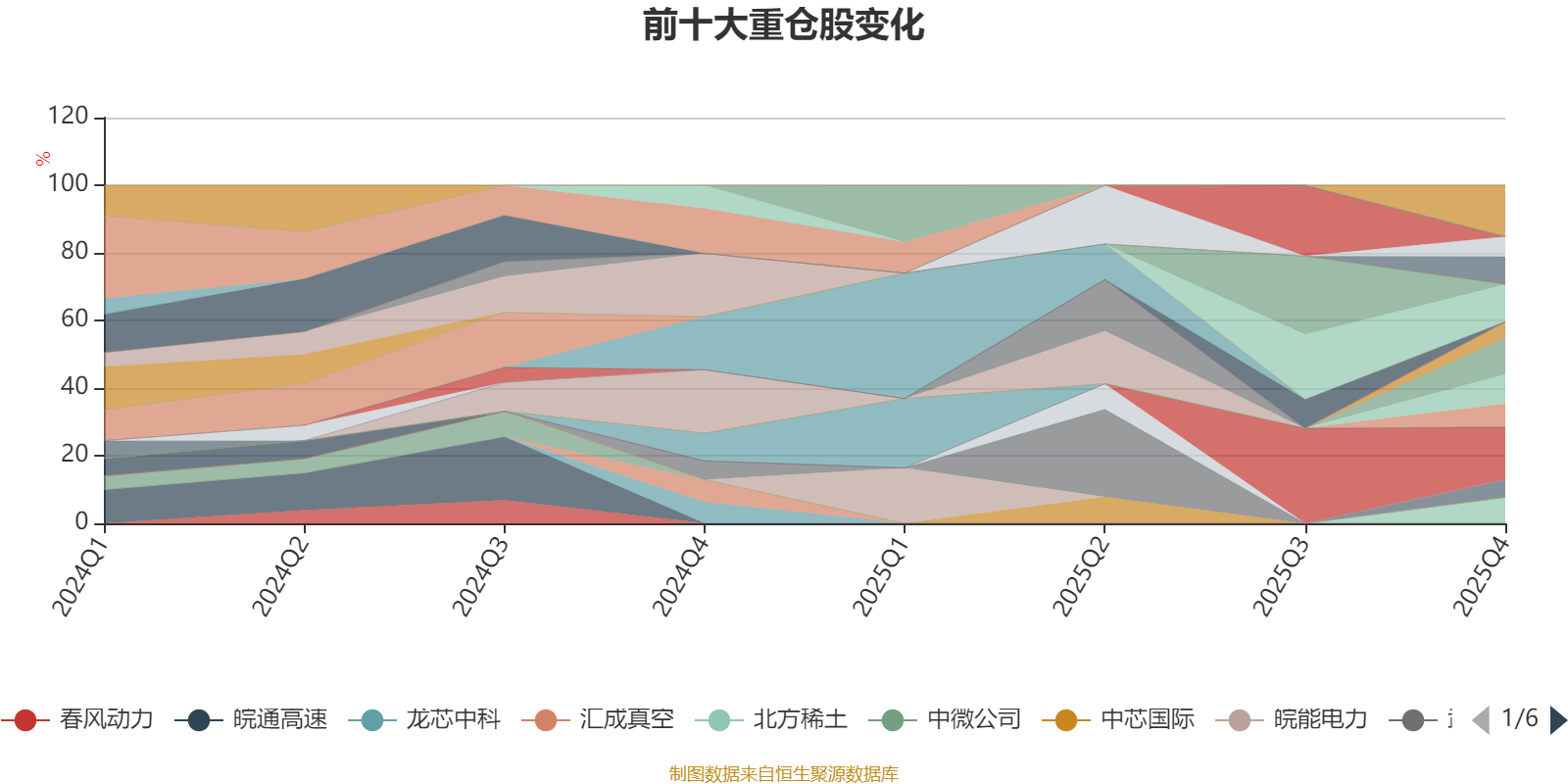 该基金持股集中度较高,近2年前十大重仓股集中度长期超过60%。截至2025年末,基金十大重仓股分别是杭州银行、南京银行、兖矿能源、亿纬锂能、紫金黄金国际、北方稀土、藏格矿业、奥比中光、东北证券、东方财富。