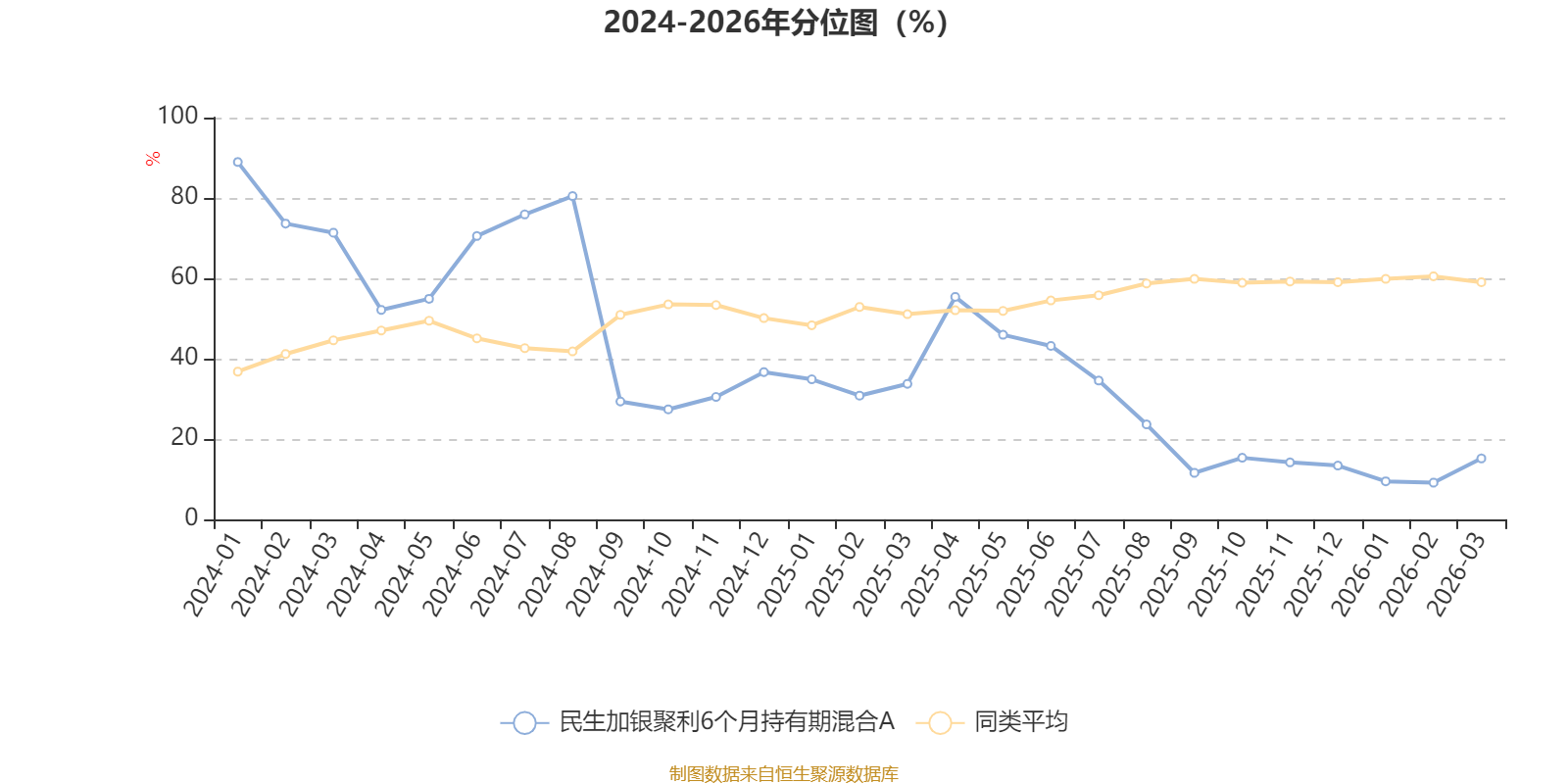 截至4月8日,民生加银聚利6个月持有期混合A近三个月复权单位净值增长率为0.84%,位于同类可比基金228/629;近半年复权单位净值增长率为1.12%,位于同类可比基金357/629;近一年复权单位净值增长率为0.98%,位于同类可比基金614/629;近三年复权单位净值增长率为5.53%,位于同类可比基金455/581。