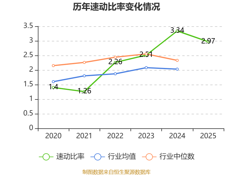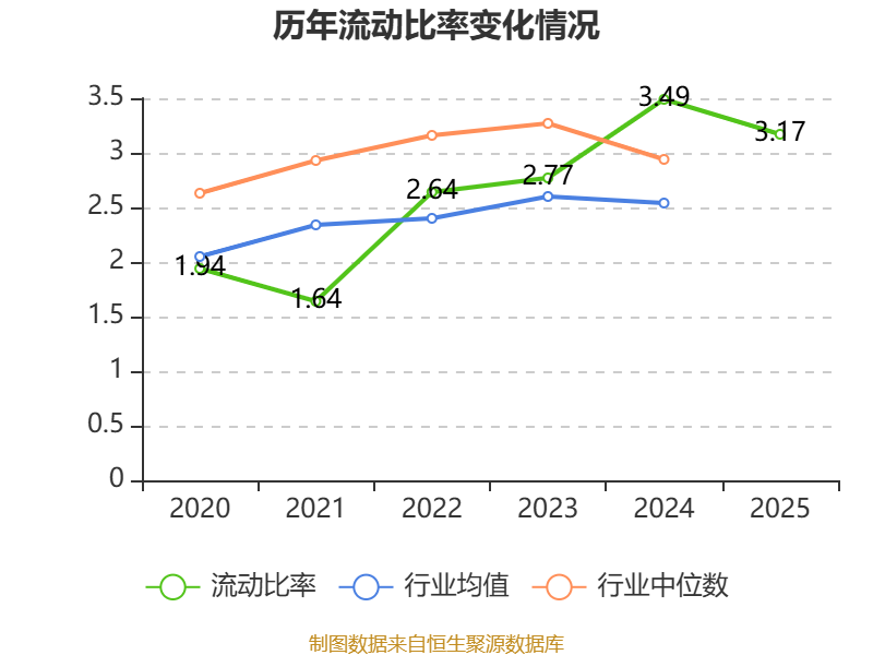 2025年,公司流动比率为3.17,速动比率为2.97。