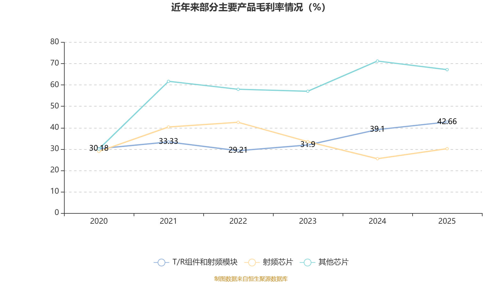 资料显示,公司主营源相控阵T/R组件、射频模块、射频放大类芯片、射频控制类芯片等。