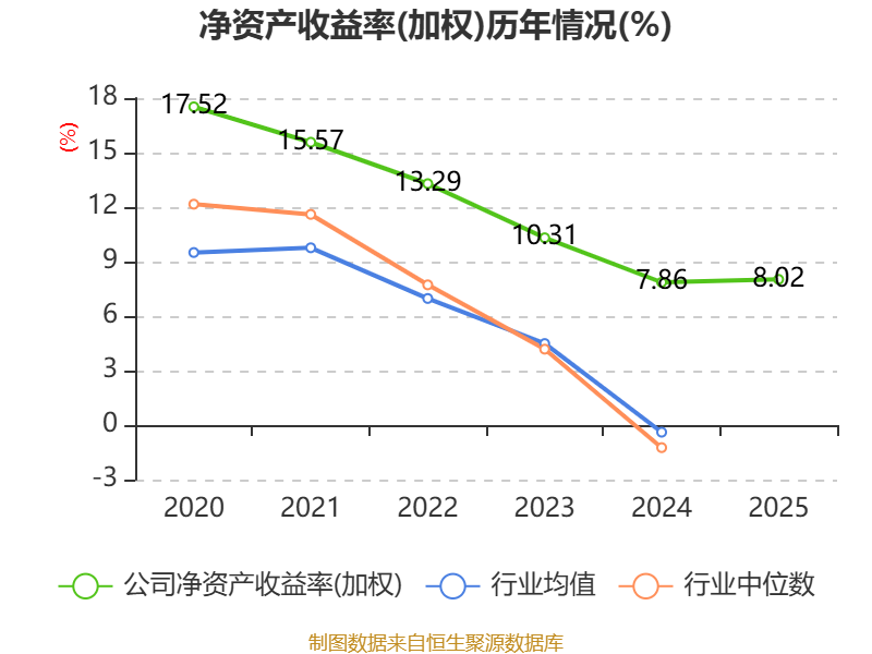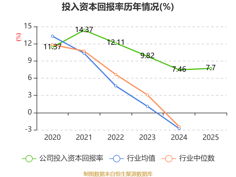 数据显示,2025年公司加权平均净资产收益率为8.02%,较上年同期上升0.16个百分点。公司2025年投入资本回报率为7.7%,较上年同期上升0.24个百分点。