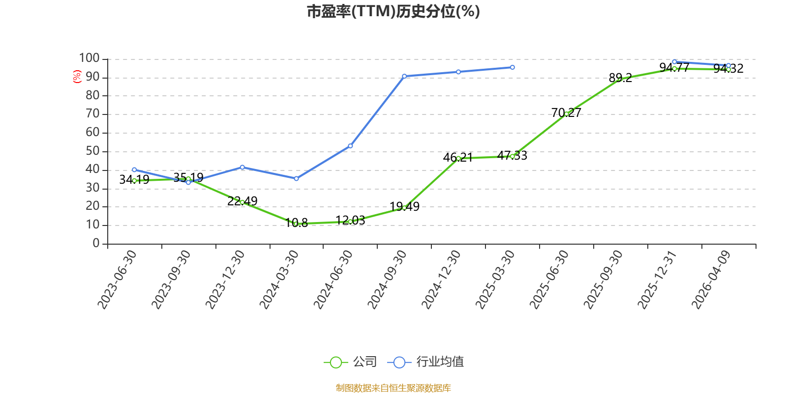 市盈率、市净率为负时,不显示当期分位数,会导致折线图中断。