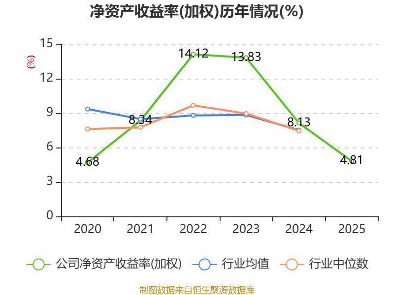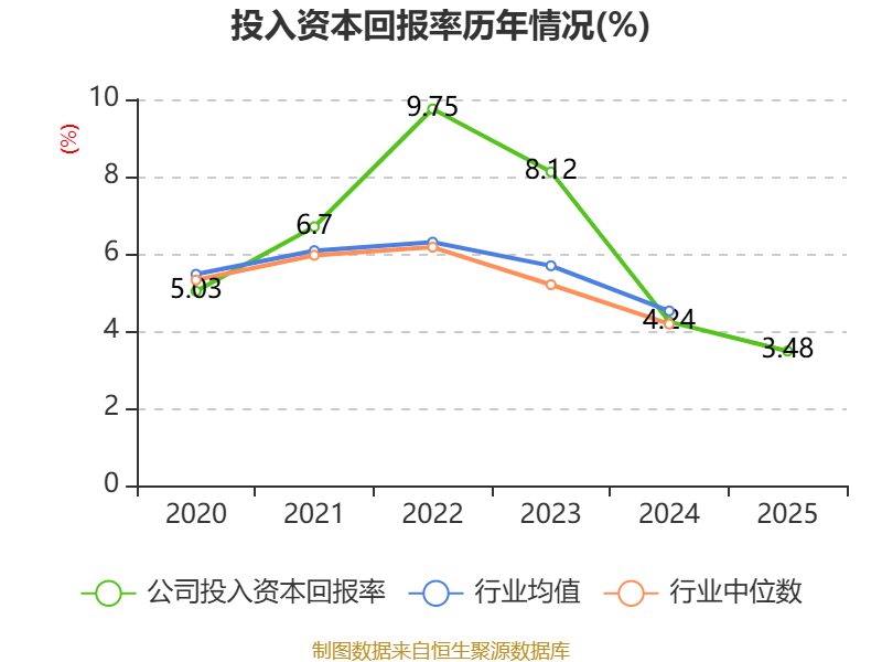 数据显示,2025年公司加权平均净资产收益率为4.81%,较上年同期下降3.32个百分点。公司2025年投入资本回报率为3.48%,较上年同期下降0.76个百分点。