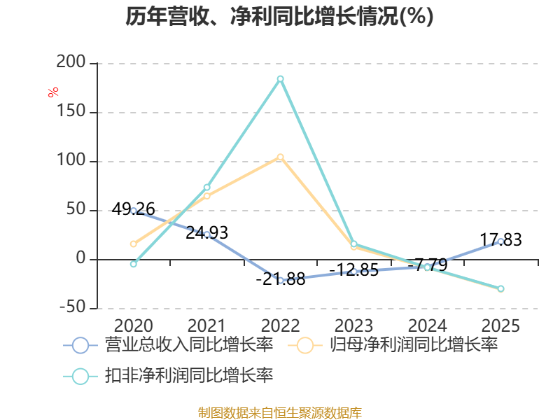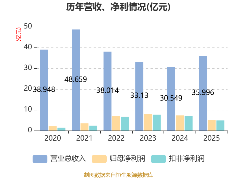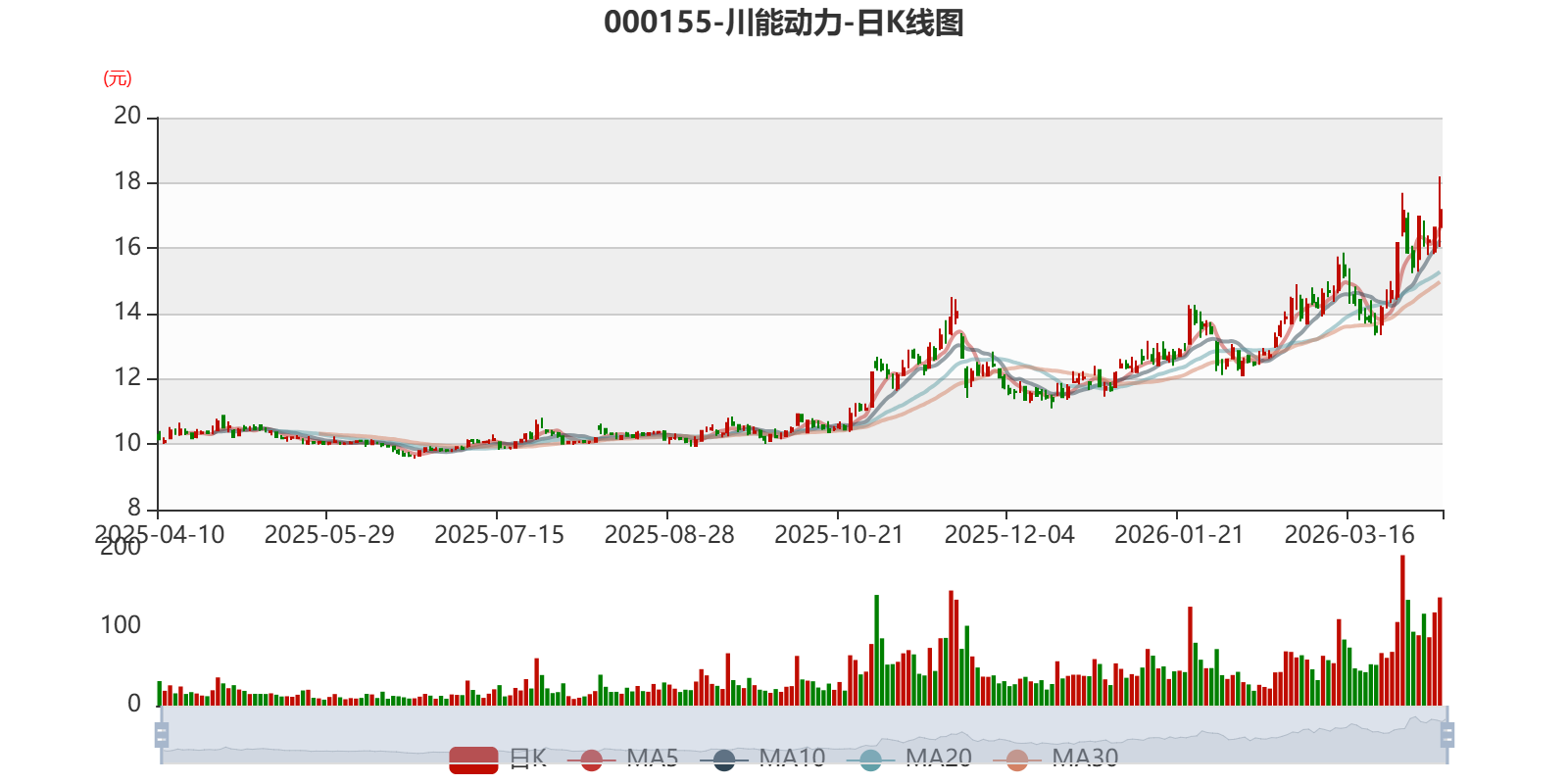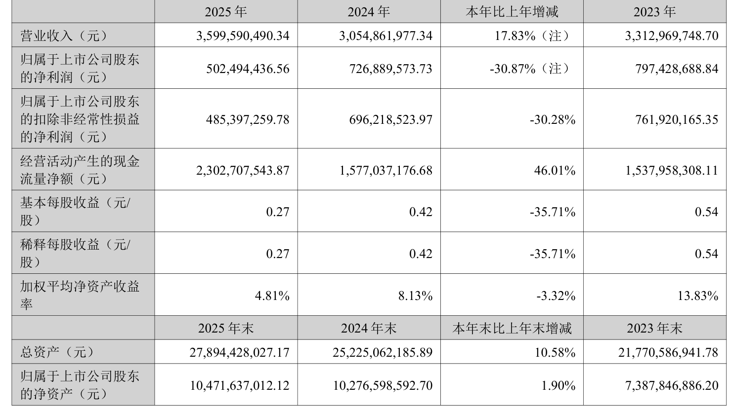 中证智能财讯川能动力(000155)4月10日披露2025年年度报告。2025年,公司实现营业总收入36亿元,同比增长17.83%;归母净利润5.02亿元,同比下降30.87%;扣非净利润4.85亿元,同比下降30.28%;经营活动产生的现金流量净额为23.03亿元,同比增长46.01%;报告期内,川能动力基本每股收益为0.27元,加权平均净资产收益率为4.81%。