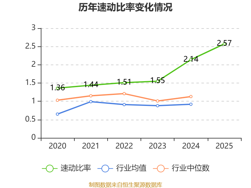 2025年,公司流动比率为2.61,速动比率为2.57。