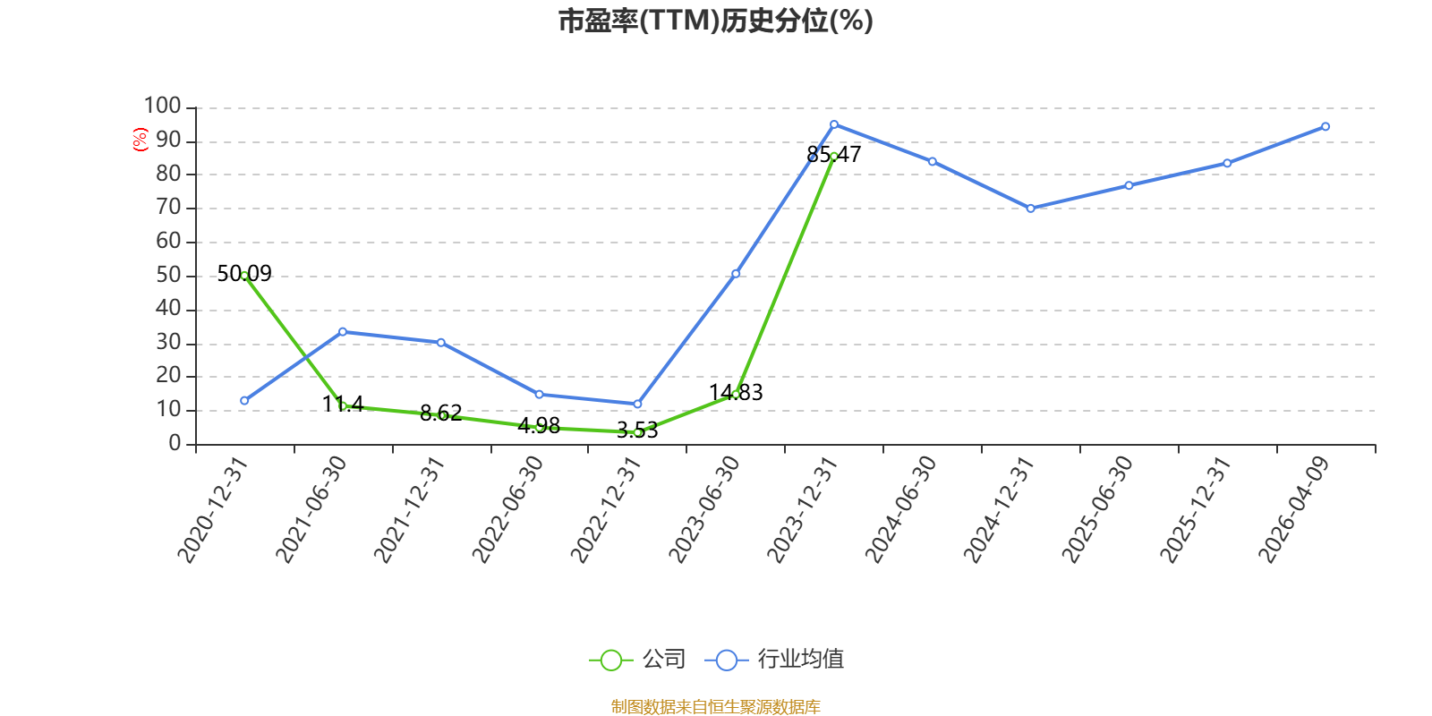 市盈率、市净率为负时,不显示当期分位数,会导致折线图中断。