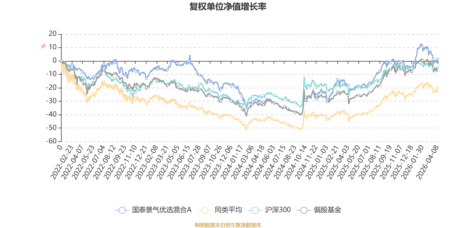 截至4月8日,国泰景气优选混合A近三个月复权单位净值增长率为-2.71%,位于同类可比基金419/621;近半年复权单位净值增长率为0.18%,位于同类可比基金361/621;近一年复权单位净值增长率为35.53%,位于同类可比基金377/618;近三年复权单位净值增长率为0.79%,位于同类可比基金410/559。