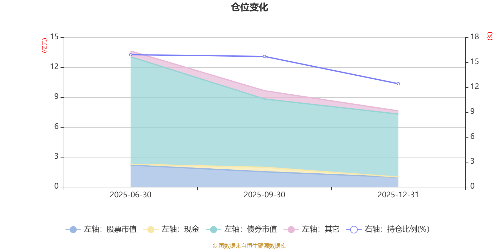 据定期报告数据统计,成立以来平均股票仓位为14.67%,同类平均为19.2%。2025年上半年末基金达到15.91%的最高仓位,2025年末最低,为12.41%。
