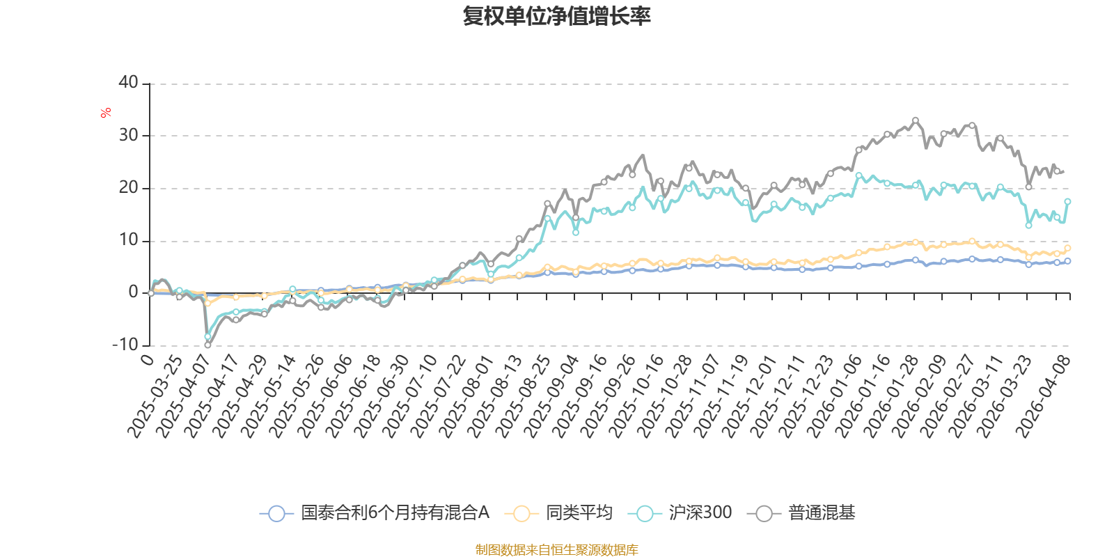 截至4月8日,国泰合利6个月持有混合A近三个月复权单位净值增长率为0.92%,位于同类可比基金212/629;近半年复权单位净值增长率为1.62%,位于同类可比基金282/629;近一年复权单位净值增长率为6.43%,位于同类可比基金374/629。