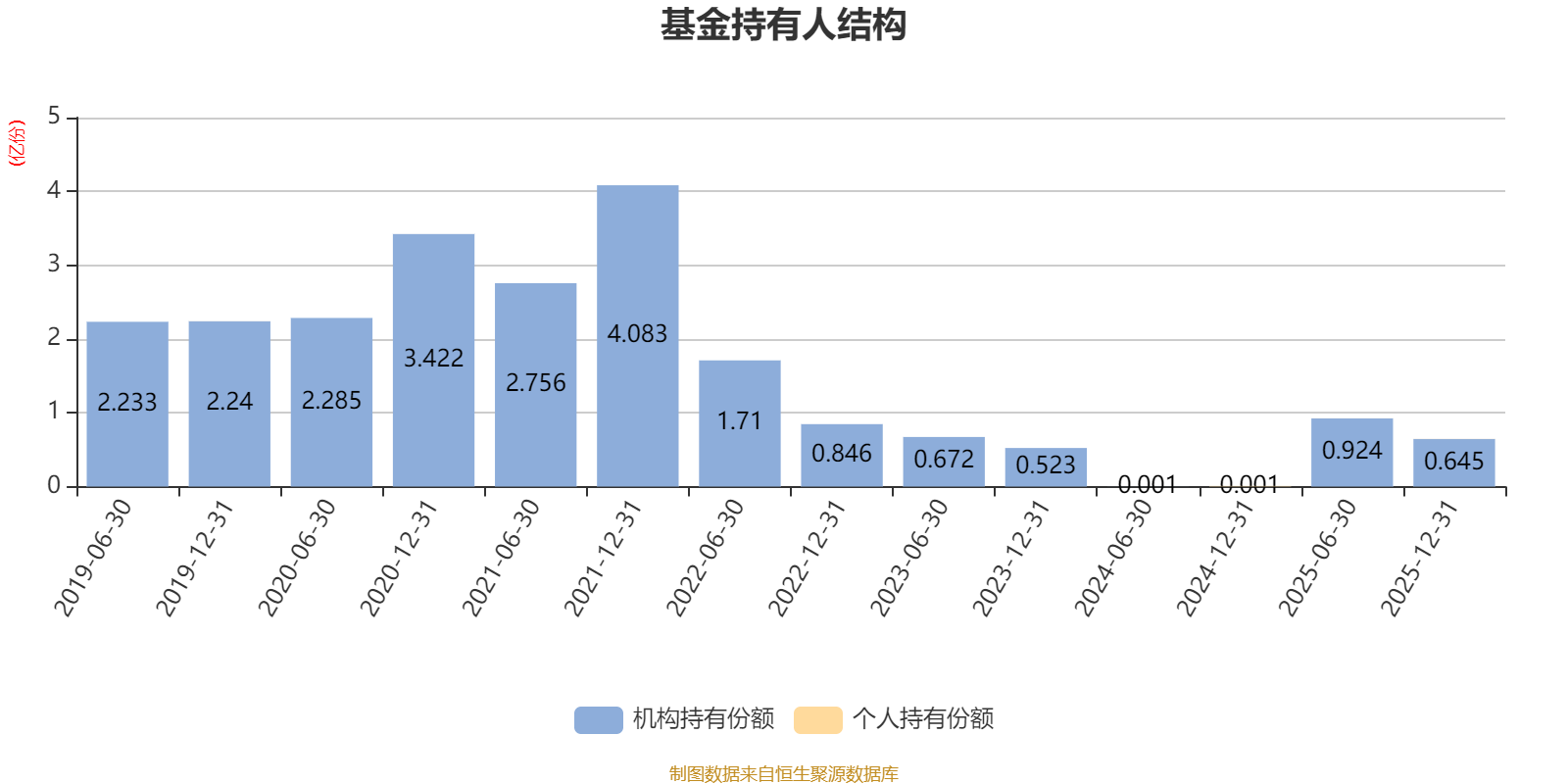 截至2025年12月31日,基金持有人共计183户,合计持有6467.43万份。其中管理人员工持有9370.08份,占比0.01%,机构持有份额占比99.73%,个人投资者占比0.27%。
