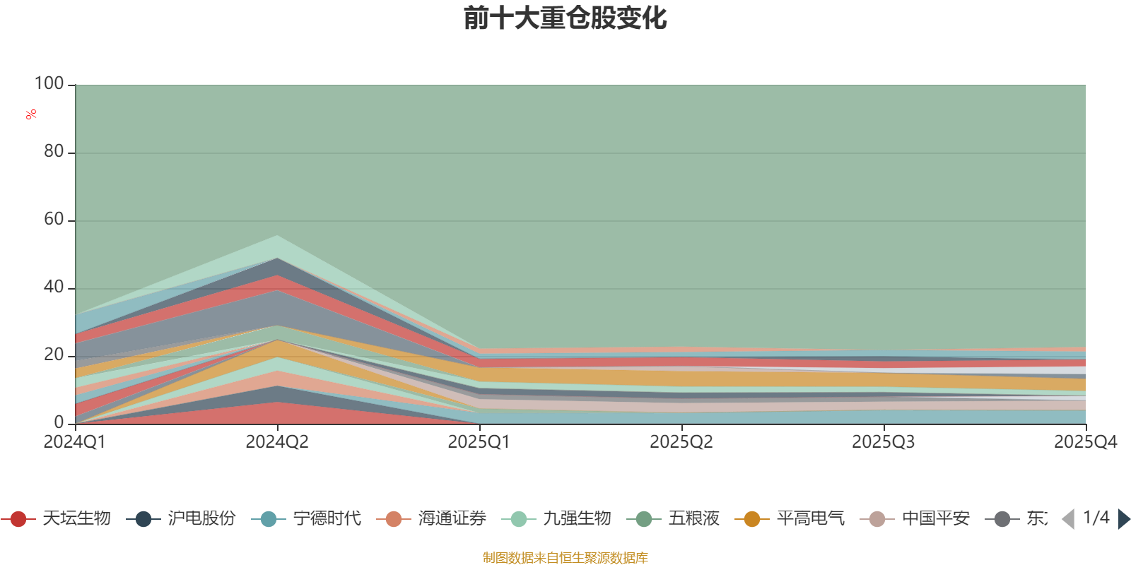 截至2025年末,基金十大重仓股分别是宁德时代、贵州茅台、中国平安、紫金矿业、中际旭创、招商银行、美的集团、新易盛、兴业银行、立讯精密。