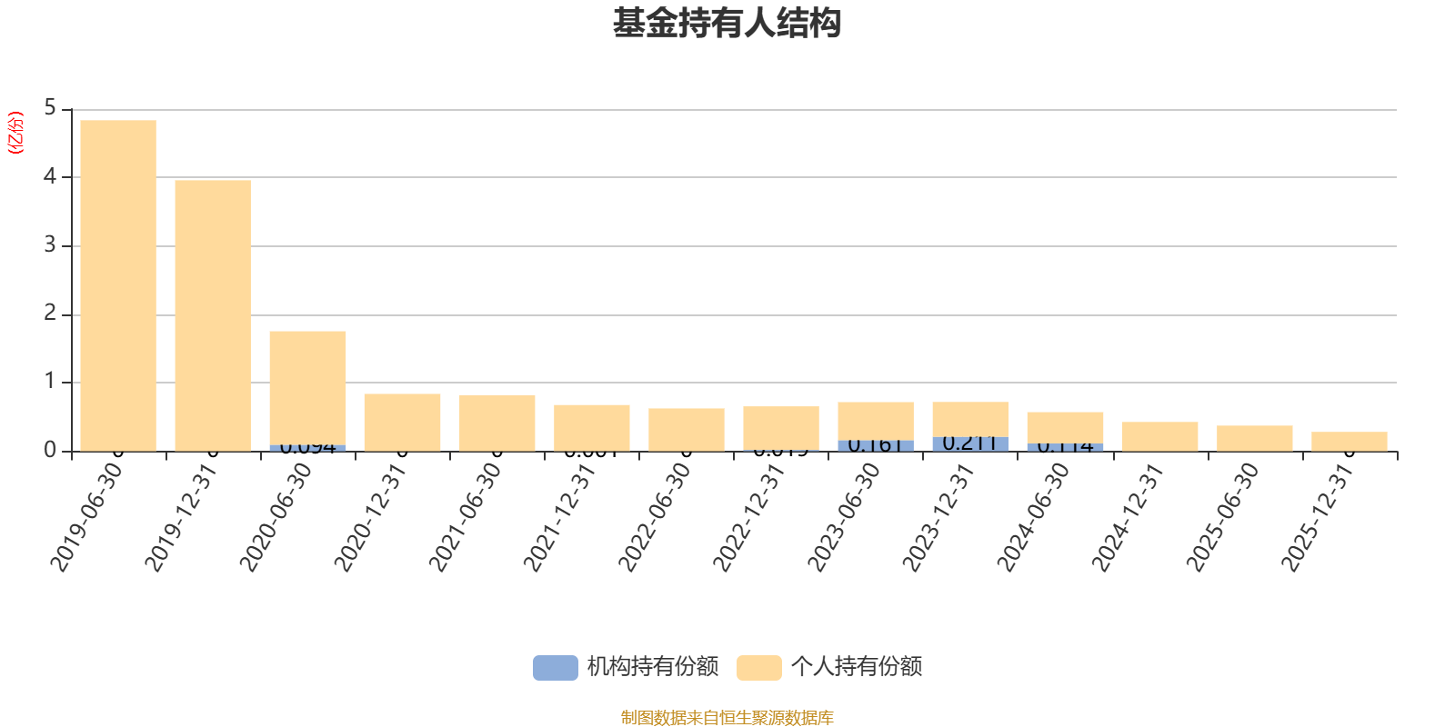 截至2025年12月31日,基金持有人共计2739户,合计持有2825.15万份。其中管理人员工持有18.11万份,占比0.64%,机构持有份额占比0.00%,个人投资者占比100.00%。