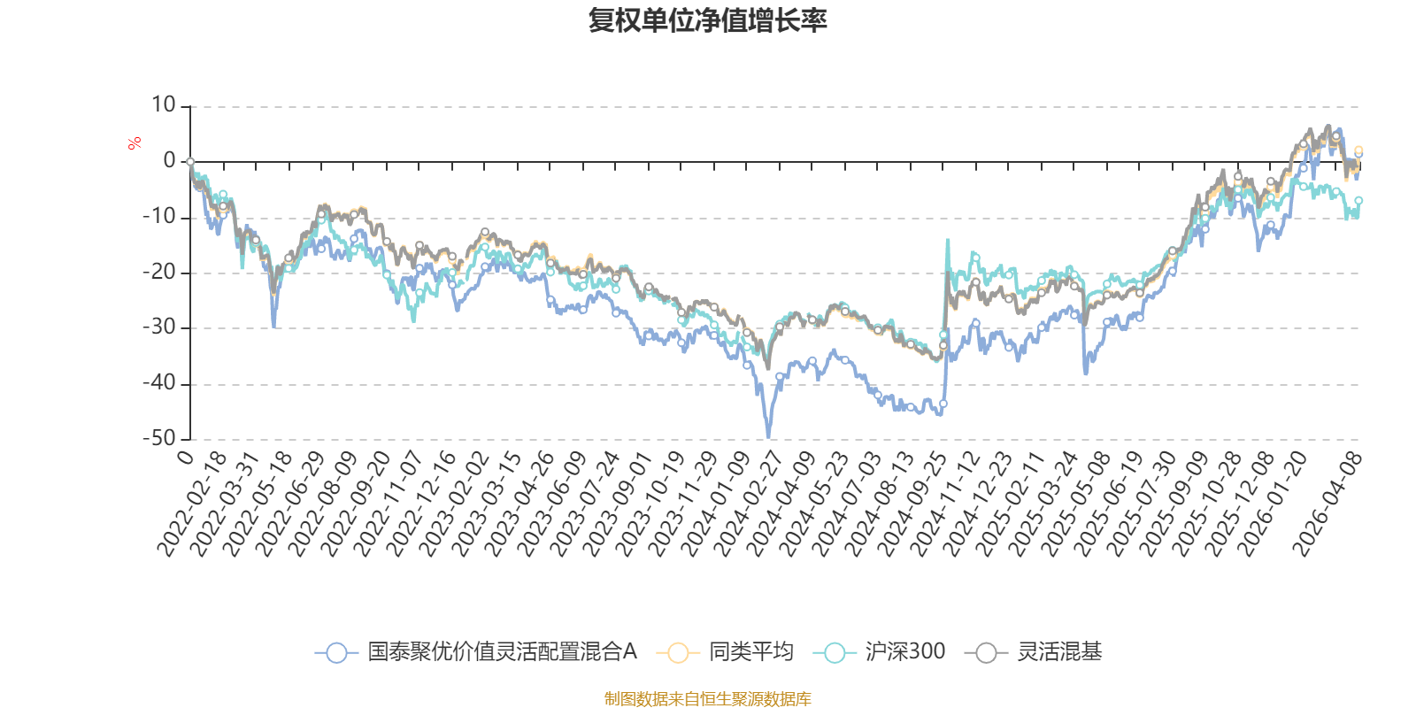 截至4月8日,国泰聚优价值灵活配置混合A近三个月复权单位净值增长率为5.15%,位于同类可比基金218/1287;近半年复权单位净值增长率为6.26%,位于同类可比基金430/1286;近一年复权单位净值增长率为64.63%,位于同类可比基金240/1286;近三年复权单位净值增长率为27.68%,位于同类可比基金372/1286。