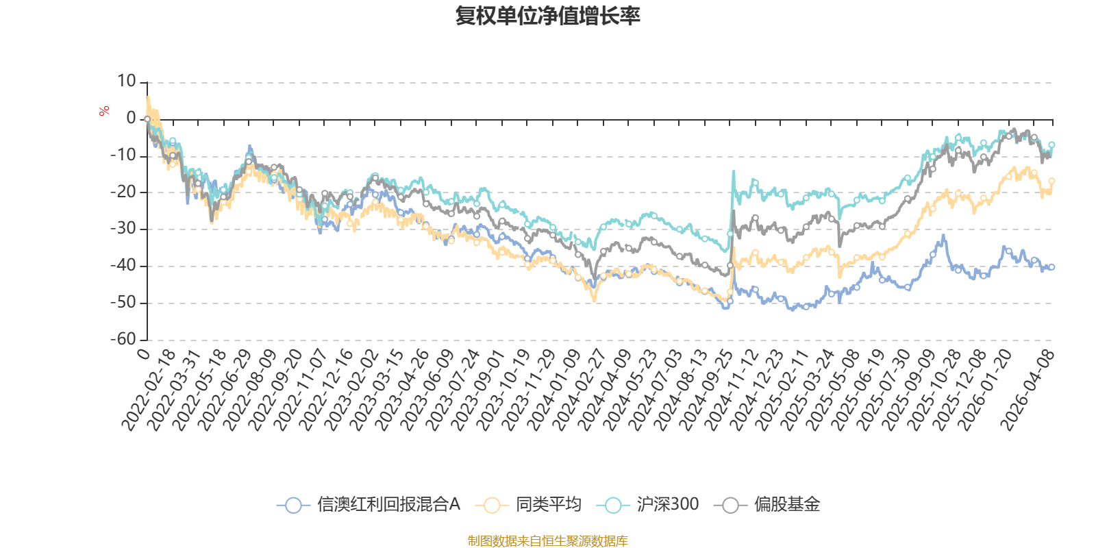 截至4月8日,信澳红利回报混合A近三个月复权单位净值增长率为-4.07%,位于同类可比基金468/621;近半年复权单位净值增长率为-10.52%,位于同类可比基金560/621;近一年复权单位净值增长率为15.87%,位于同类可比基金547/618;近三年复权单位净值增长率为-19.43%,位于同类可比基金533/559。
