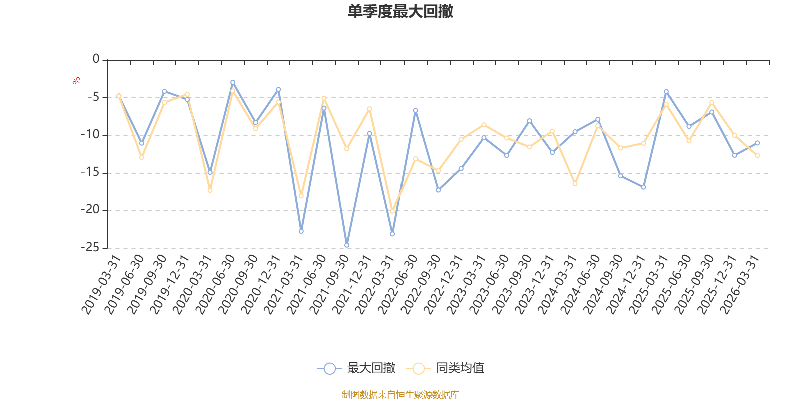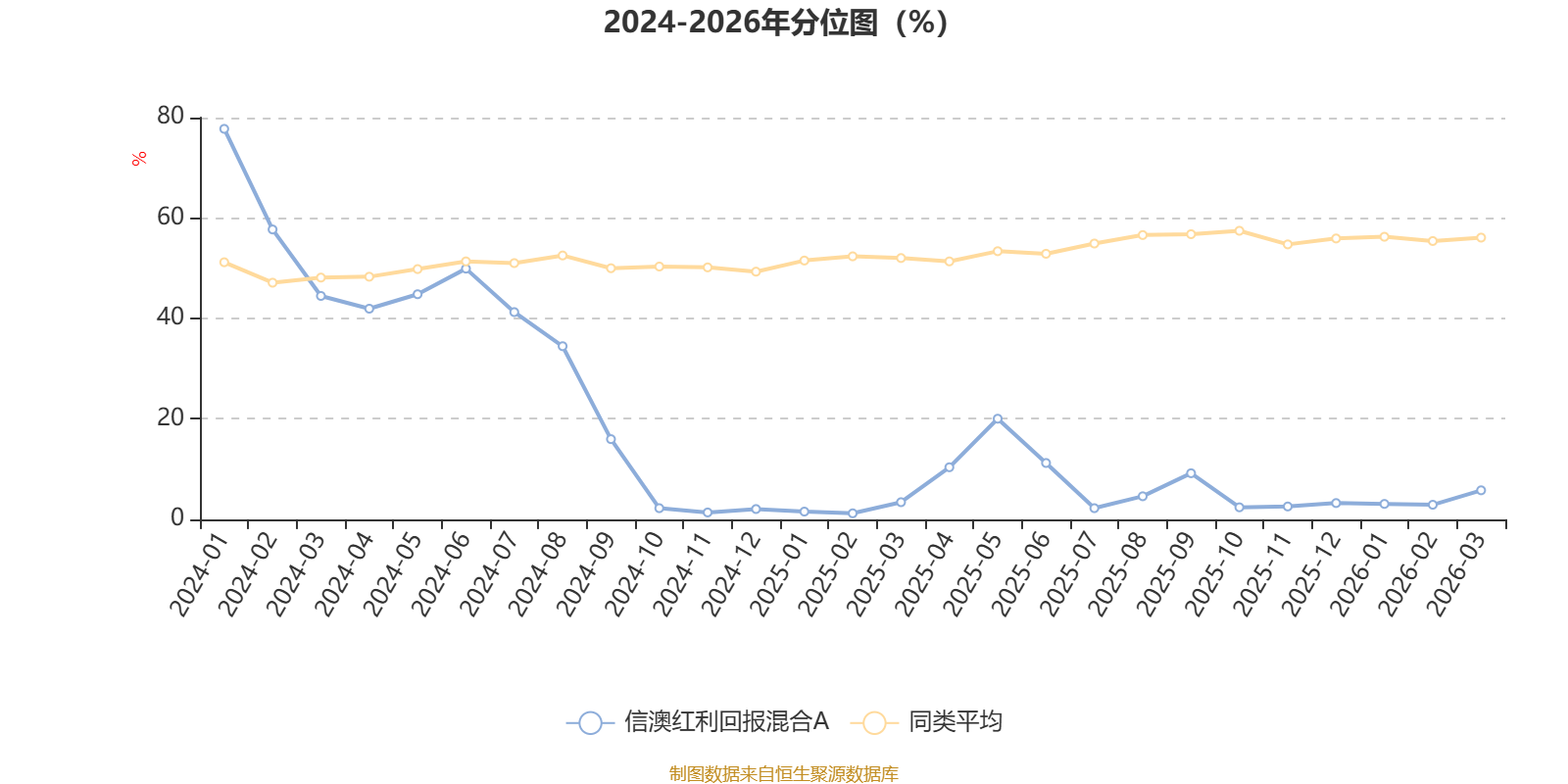 通过所选区间该基金净值增长率分位图,可以观察该基金与同类基金业绩比较情况。图为坐标原点到区间内某时点的净值增长率在同类基金中的分位数。