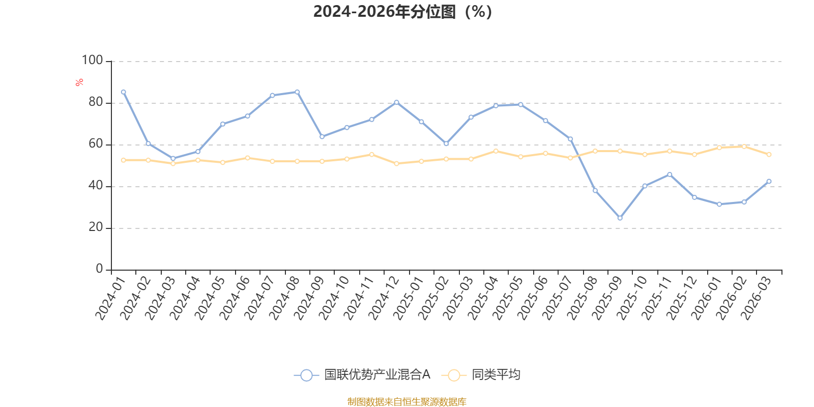 通过所选区间该基金净值增长率分位图,可以观察该基金与同类基金业绩比较情况。图为坐标原点到区间内某时点的净值增长率在同类基金中的分位数。