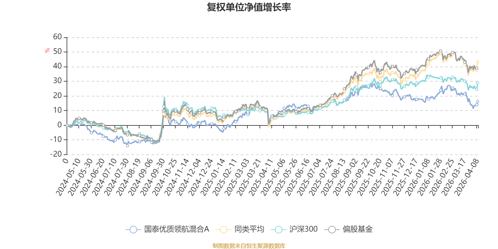 截至4月8日,国泰优质领航混合A近三个月复权单位净值增长率为-1.35%,位于同类可比基金404/689;近半年复权单位净值增长率为-9.20%,位于同类可比基金592/689;近一年复权单位净值增长率为12.38%,位于同类可比基金615/685。