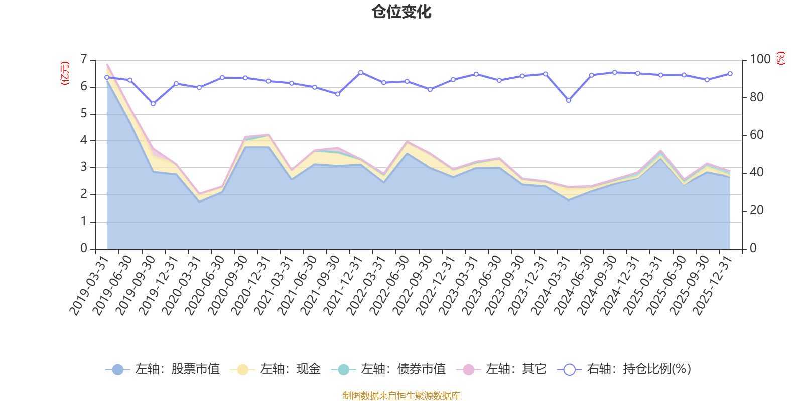 据定期报告数据统计,近三年平均股票仓位为90.88%,同类平均为86.9%。2024年三季度末基金达到93.59%的最高仓位,2019年三季度末最低,为76.9%。
